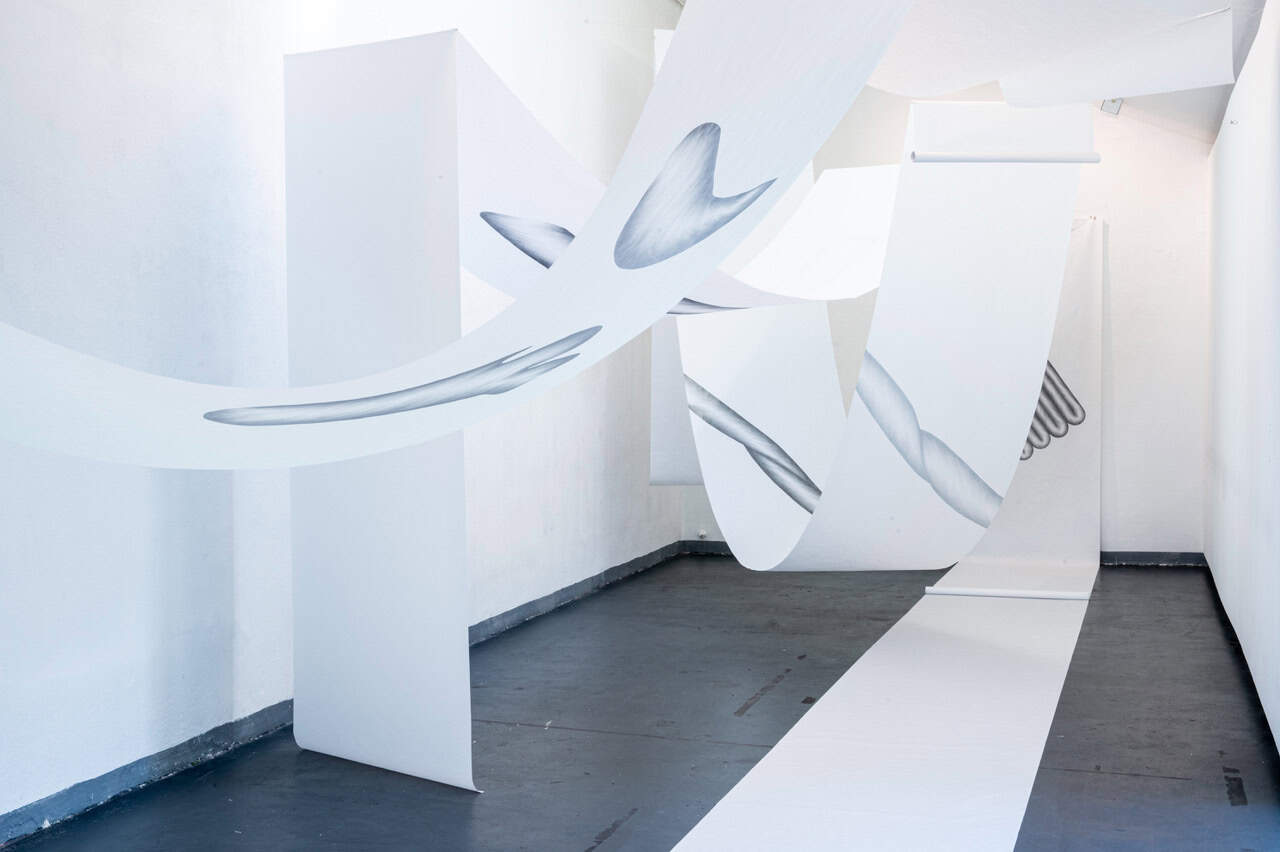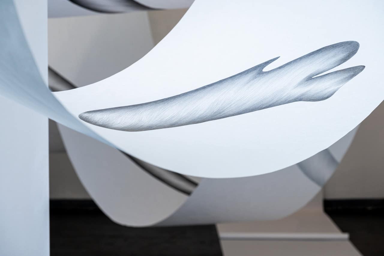 Her artistic practice centers around drawing – more precisely, drawing with 3B pencil on paper. In both small and large formats, the artist pursues the ability of a drawing to slip into a range of roles, including sculptures, furry objects, metallic monuments and brushstrokes. Other series include drawings of found objects, forgotten vestiges of everyday life that are drawn in close-up and resurrected in a new environment and context. Lanner’s practice is currently adopting an increasingly installation-based approach, in which her drawings surround the audience in unconventional performative settings.